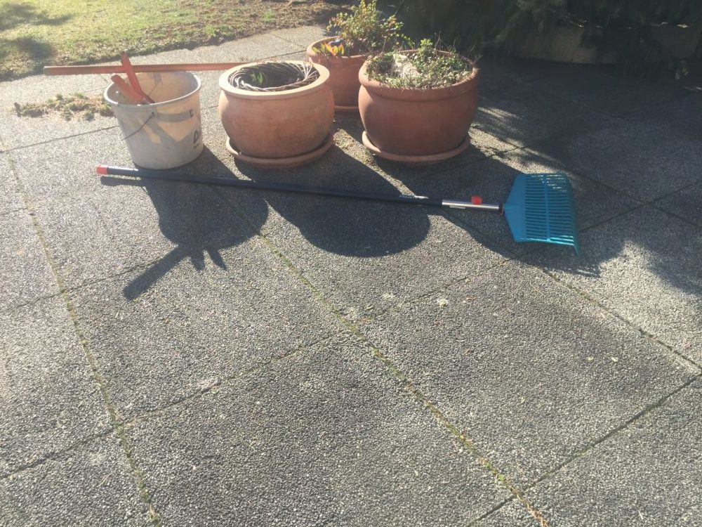 Der Rasen – na ja das Wiesenstück ist vertikutiert und frisch eingesät. Der nette Nachbar von nebenan hat fleißig gewerkelt. Alleine hätte ich das nicht geschafft.