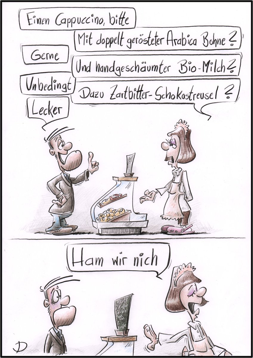 Also, das kann ich daheim machen, aber auswärts gibt’s den meistens nicht, eher koffeinfreien Kaffee.