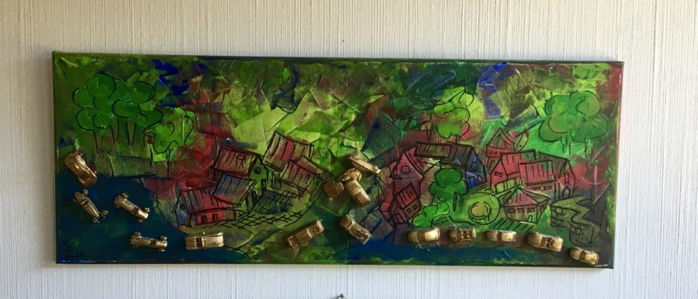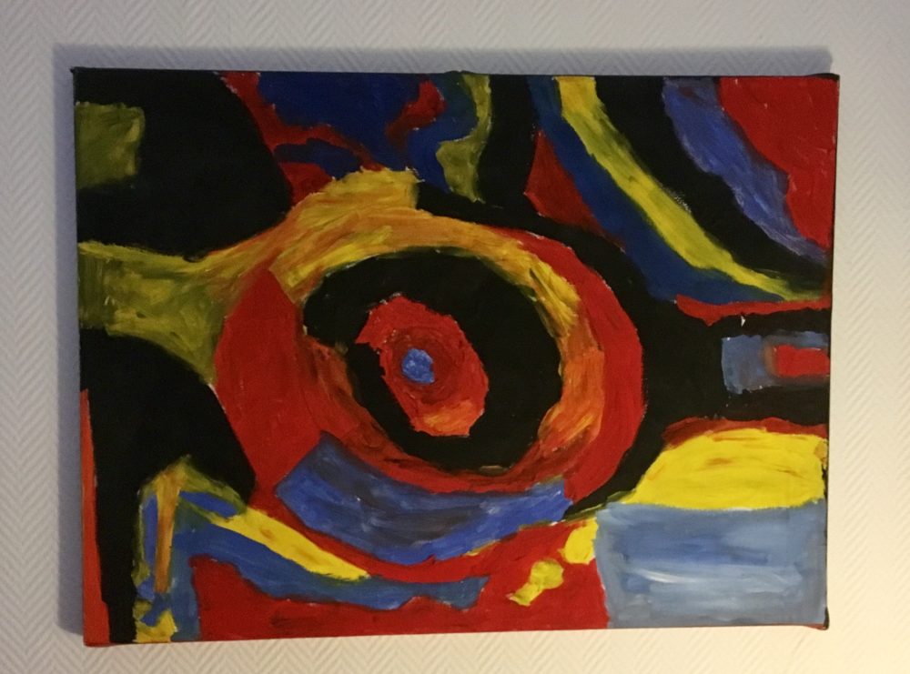 Das Kreuz ist ein Unikat. Es symbolisiert, dass wir nicht wissen ob Jesus dunkel oder hellerhäutig war. Ich habe es, als Jugendliche, zusammen mit meinem Vater gemacht. Es hängt bei uns im Eingang und schreckt manche Menschen ab.